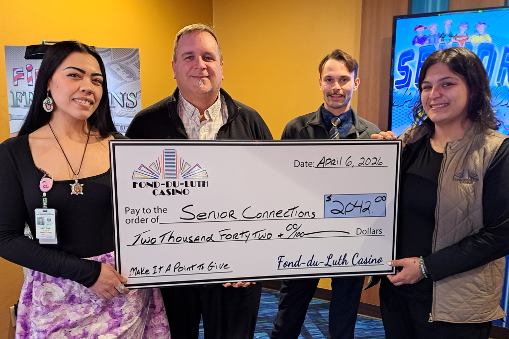 A HUGE Thank you to Fond-du-Luth Casino for their generous donation from their Make it a point to Give Campaign to us!