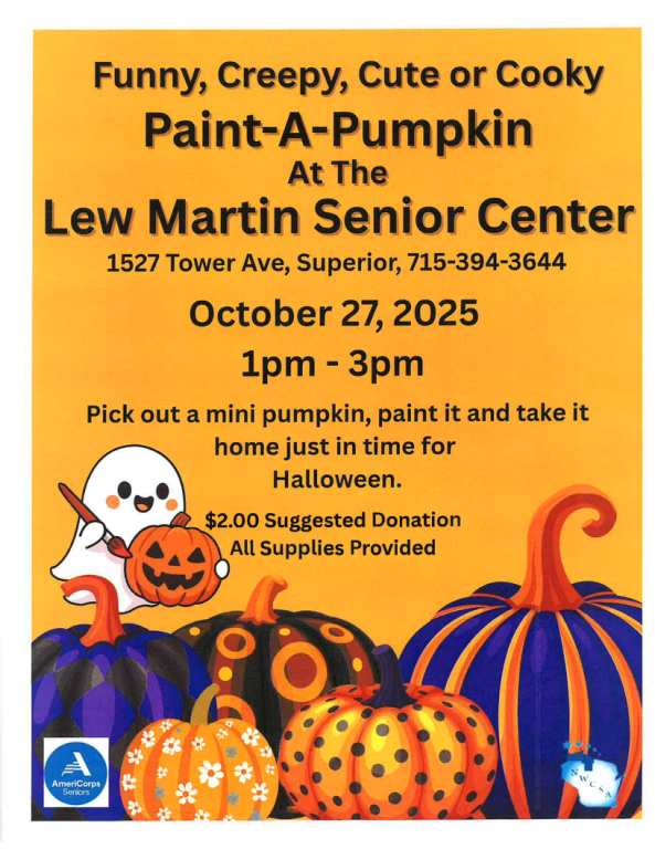 We have 39 seats available on our Halloween Lights Bus Trip on October 30th, 2025. This charter bus event is FREE--must be 55 years of age or older. We will take you by homes in the Twin Ports area to view their fall decorations.