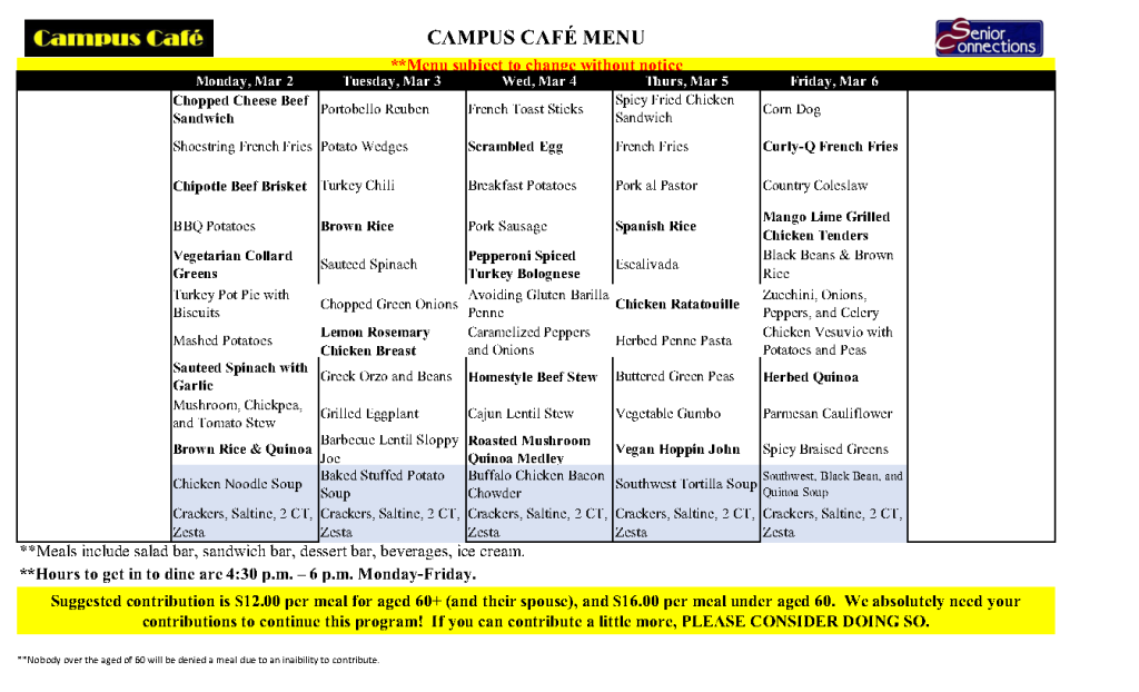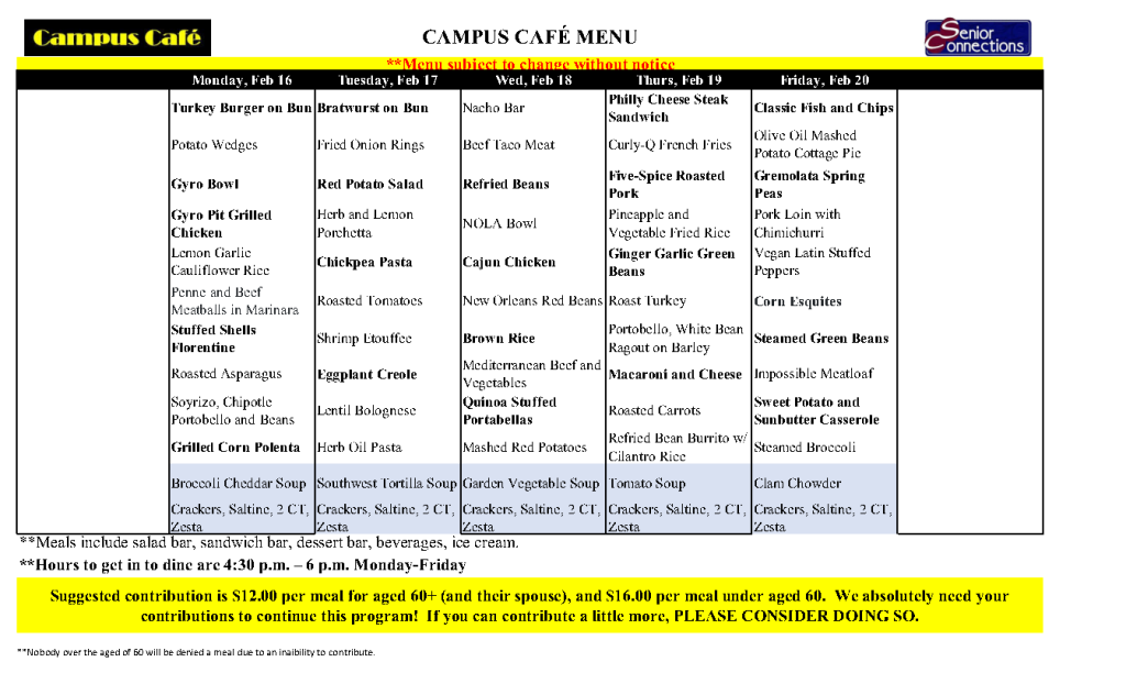 ***CAMPUS CAFE WILL BE CLOSED THE FOLLOWING DATES in 2026***